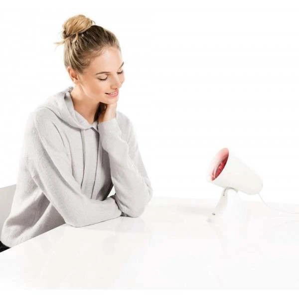 It is simple and easy to use: Simply plug in and direct the soothing warm irradiation on to the treated area for approximately 12 minutes. The distance from the skin should be approximately 50 cm, and you should feel a warming sensation.