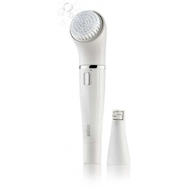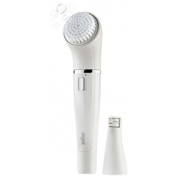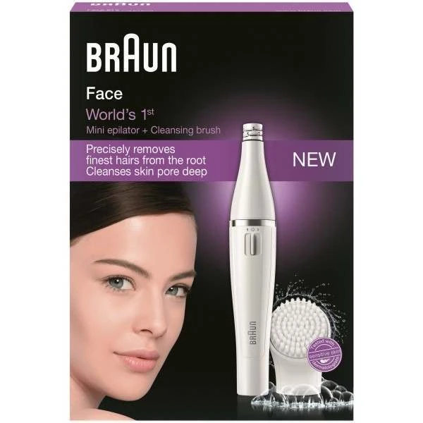 Braun Face combines two facial treatments in one battery operated device: gentle deep pore cleansing with the brush & precise epilation of the finest hairs.