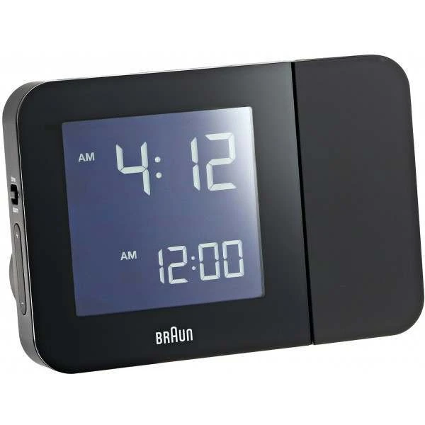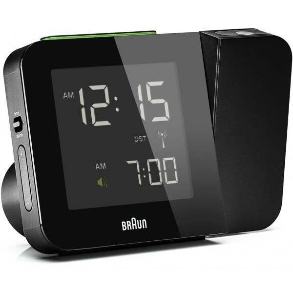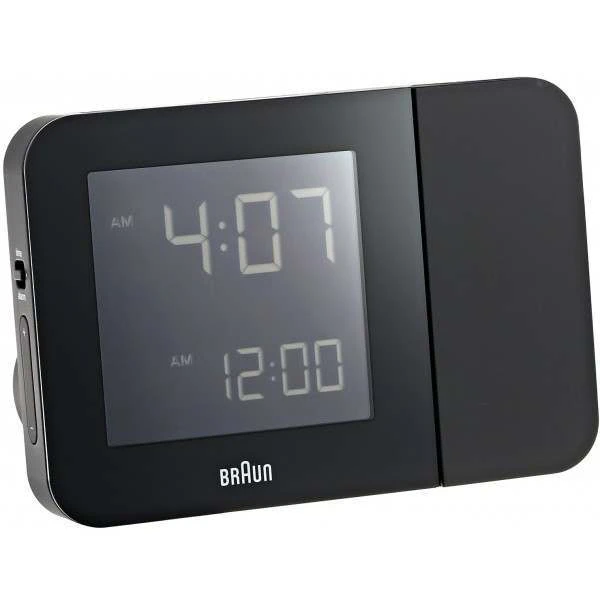 This Braun radio controlled clock has a motion activated projection function where you can turn the projection image on/off by waving your hand over the sensor. The side-arm at the right side of the clock tilts 180 degrees and the projection display can be rotated a full 360 degrees for you to customise the image on the wall or ceiling.