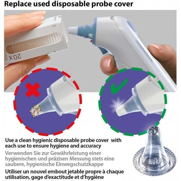 - Designed so you can easily switch between users without having to spend time cleaning the probe. Use a clean disposable hygienic lens filter with each measurement: 1) To maintain hygiene. 2) To protect your child from cross-contamination. 3) To ensure earwax residues do not impact accuracy of the reading.