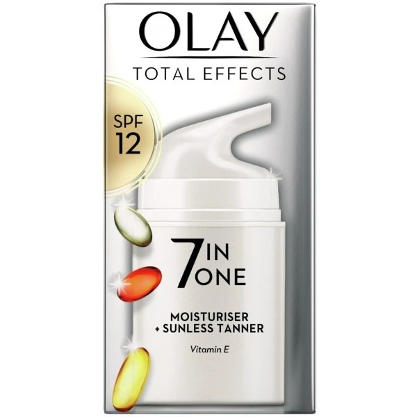 - Total effects multi-tasking moisturiser with gradual sunless tanner gives you 7 beautiful benefits for younger looking skin