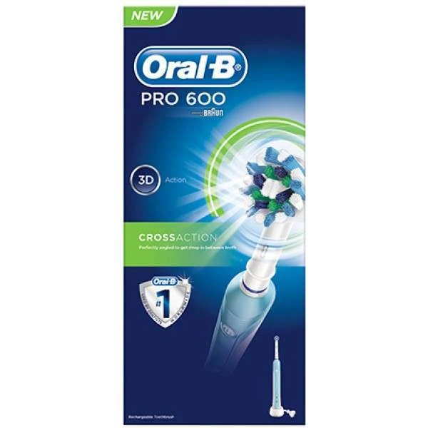 The Oral-B Pro 600 CrossAction electric toothbrush offers the unique 3D Cleaning Action which combines 20,000 pulsations and 8,800 oscillating movements per minute. The advanced cleaning action helps to remove up to 100% more plaque than a manual toothbrush, providing you with a deeper clean.