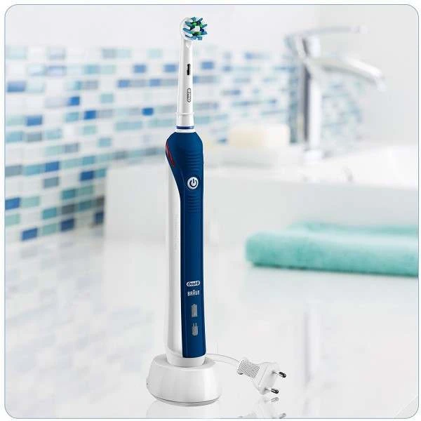 Experience Oral-B Pro from the N1 brand recommended by dentist worldwide. The sleek handle of the 3000 electric toothbrush helps you brush like your dentist recommends: It helps you brush for 2 minutes with the professional timer and it notifies you every 30 seconds to change the area you are brushing. While you are just moving the brush around your mouth, Oral-B’s unique round head does all the rest. It removes up to 100% more plaque than a standard manual toothbrush for healthier gums and it starts making your smile whiter as of the first day of brushing by removing surface stains. Not only this, but the toothbrush helps you protect your delicate gums with the proprietary pressure control technology that reduces brushing speed and alerts you to be gentler if you brush too hard. With the Pressure Sensor Oral-B Pro, 3000 toothbrush, is the must-have brush for everyone who wants to switch to an electric toothbrush and improve their oral health. No wonder Oral-B is the N1 recommended brand by dentists worldwide.