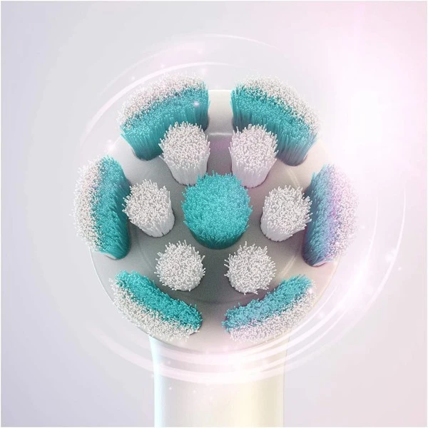 - On Oral-B’s signature round brush head, bristles are meticulously arranged to best surround each tooth for the best possible clean