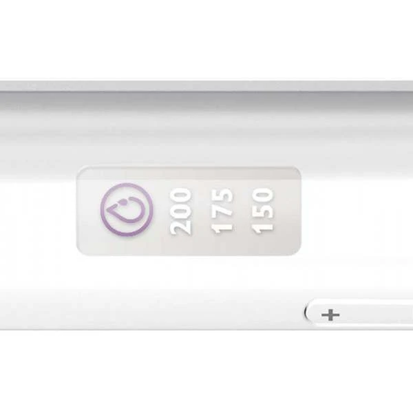 - 3 digital temperature settings – 3 temperature settings (200 – 175 – 150 Celsius) that work together with the sensor to ensure that you always straighten at the best temperature for your hair type.