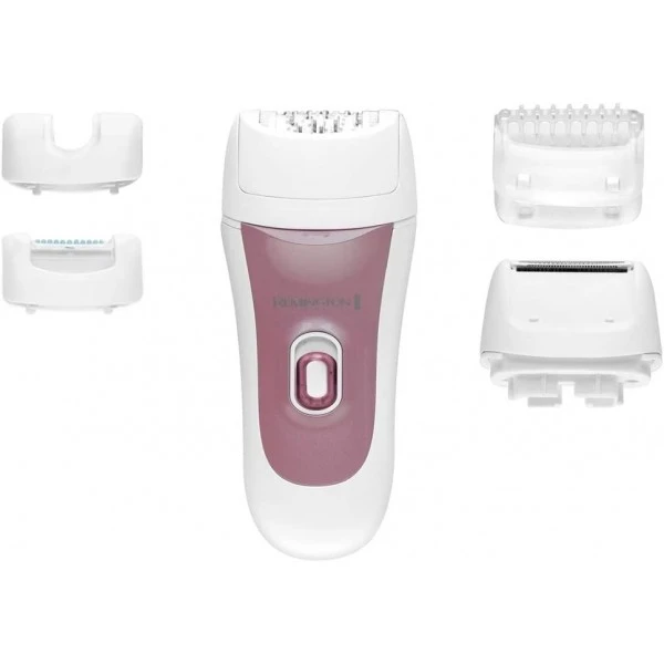 - 5 attachments: Perfect Angle Cap, Massage Cap with Aloe Vera, Detail Cap for , Smaller Areas, Shaver Head and Bikini Comb