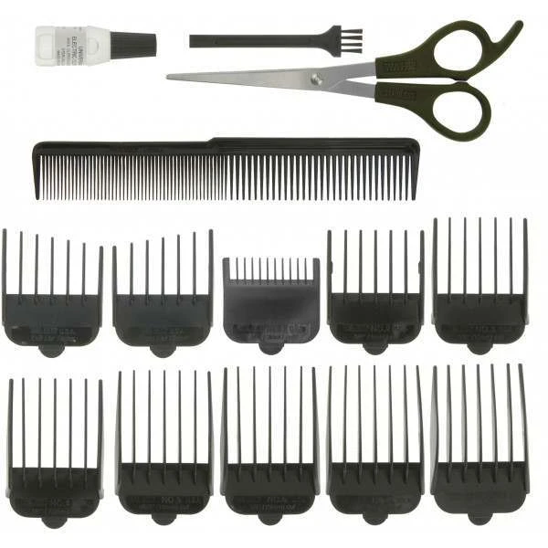 - Box Contains1 x Clipper1 x Battery trimmer1 x Battery ear, nose and brow trimmer10 x Clipper attachment combs1 x Eyebrow comb attachment1 x Barber comb1 x Cleaning brush1 x Blade oil1 x Scissors3 x AA batteries1 x Instruction booklet1 x Hard case for storage