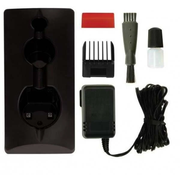 - What’s in the box? Super Trimmer, 1 adjustable attachment comb, Charging stand, Blade guard, Blade oil, Cleaning brush and Instruction booklet