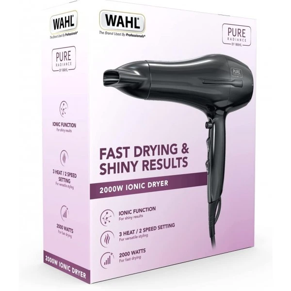 - FAST DRYING – The Pure Radiance by Wahl Hair Dryer is a powerful 2000W hairdryer to keep moisture in the hair cuticles for a sleeker and shinier finish whilst drying fast and effectively